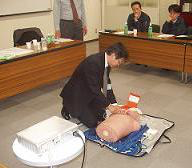 本社で普通救命講習会を実施し、22名の従業員がこれを受講しました。今後は講習を受けた従業員が受けれなかった従業員に使用方法を教え、緊急の時に「AEDがあったのに使えなかった。」などということが無いように、体制を整えていきます。